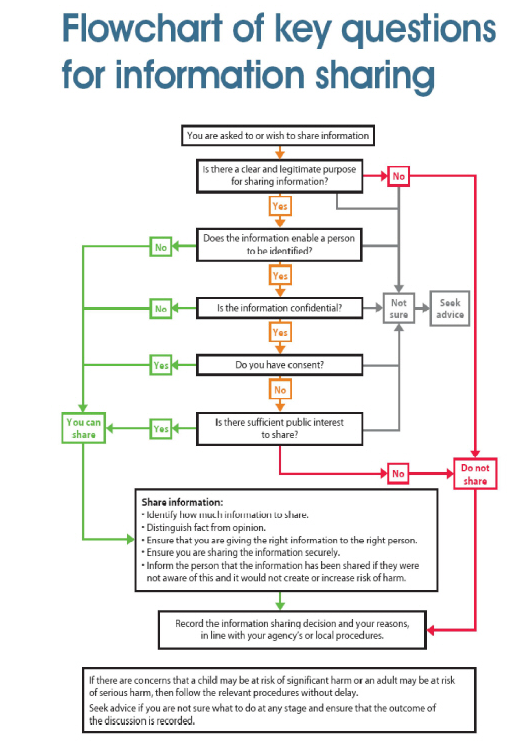Keep a record of your decision and the reasons for it – whether it is to share information or not. If you decide to share, then record what you have shared, with whom and for what purpose.